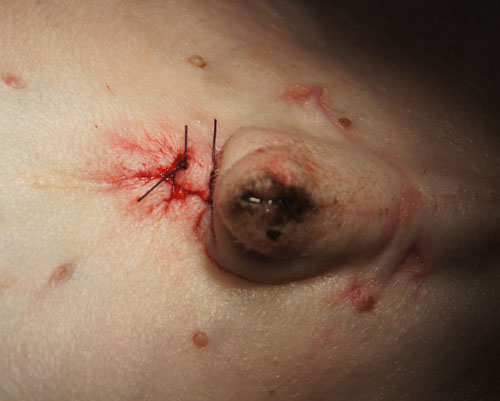 順利將結石取出,採用微創手術,傷口只需縫兩針。